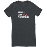 Bella Ladies Crew Neck T-Shirt for Phlebotomists - Peace, Love, and Comfort