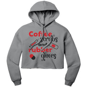 Bella Cropped Hoodie - Coffee, Scrubs, and Rubber Gloves with Medical Icons Design