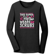 Bella Long Sleeve Shirt - Super Hero Wears Scrubs with Pink Medical Design
