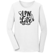 LPN Life Long Sleeve Shirt with Needle, Pill & Stethoscope Design - Comfortable Cotton Tee for Nurses - White / S