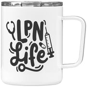 10 oz Insulated Coffee Mug for LPNs - 'LPN Life' with Needle, Pill, and Stethoscope Design - Ideal for Nursing Professionals