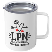 10 oz Insulated Coffee Mug with Heart, Nurse's Hat, and Pills Design - 'Licensed Practical Nurse' - Perfect for LPN Appreciation and Daily Use
