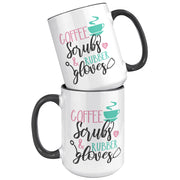 Coffee, Scrubs, and Rubber Gloves 15oz Accent Mug – Stylish and Durable Mug for Healthcare Workers