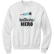 Champion Sweatshirt - Healthcare Hero with Light Blue Hearts and Needle Design
