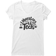 Elevate your wardrobe with our "Laboratory Tech" Women's V-Neck T-Shirt, uniquely designed for those who cherish the world of science. Adorned with images of lab vials along with the text “Laboratory Tech,” this t-shirt is a fashionable nod to your profession.