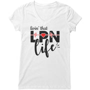 Celebrate Your LPN Journey: "Livin' That LPN Life" Women's V-Neck T-Shirt with EKG Detail Embrace and flaunt your LPN (Licensed...