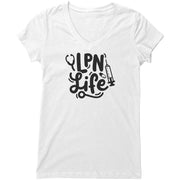 Celebrate the Essence of Nursing: "LPN Life" Women's V-Neck T-Shirt with Medical Icons